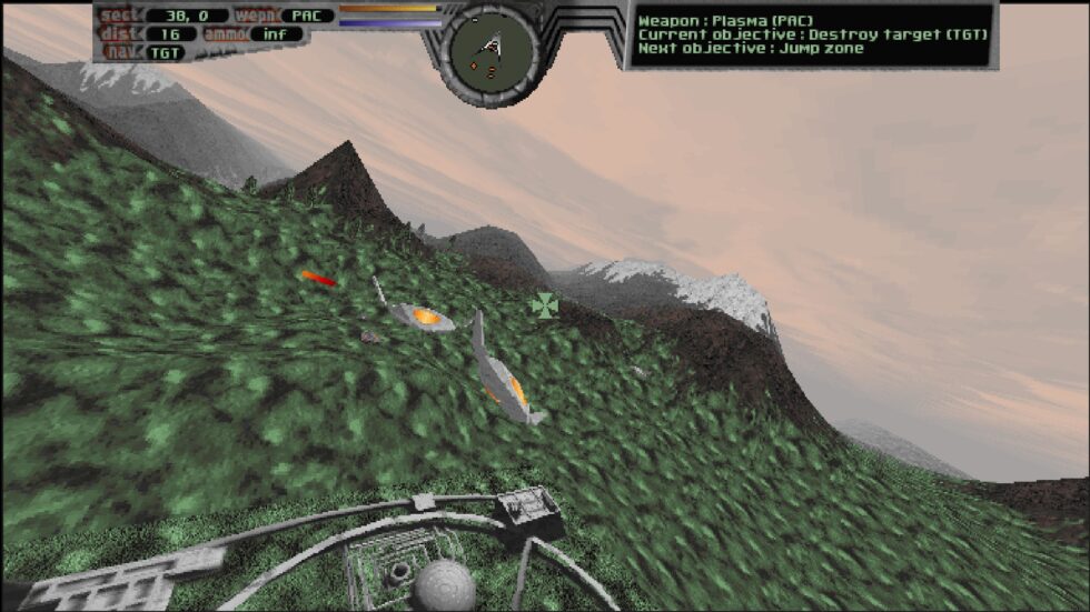Anno számomra háttérbe szorult a Terminal Velocity, ugyanis néhány hónappal előtte adták ki a Descent c. FPS-t, aminek single- és multiplayer módja teljesen lekötötte a figyelmemet és kissé leegyszerűsítve olyan hatást nyújtott, mint a klasszikus Doom, csak űrhajókkal, amikkel 360 fokban mozoghattuk. Az utóbbi olykor (például az alagútba merészkedve) a Terminal Reality üdvöskéjénél is helyt áll, de inkább hegyek és völgyek felett repkedhetünk, ahol ugyebár szinte megállás nélkül rombolnunk kell. A megsemmisített épületek fegyvereket, utánégetőt vagy HP töltőt rejthetnek, szóval irgalomnak helye nincs.